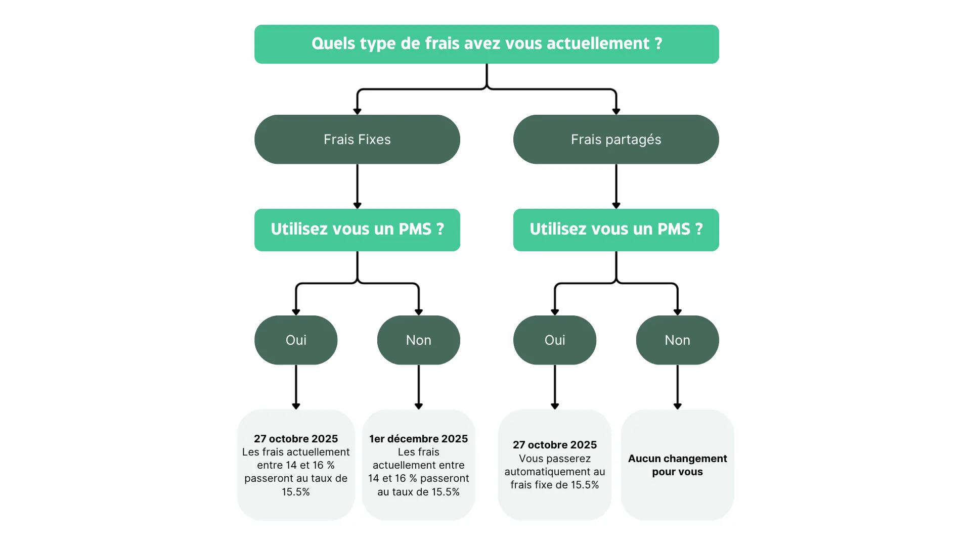 Le nouveau mode s’applique automatiquement aux hôtes connectés via PMS le 27 octobre 2025 peut importe le mode de frais actuel.